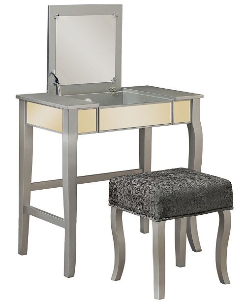Linon Home Mirrored Vanity Table And Bench Set In Silver